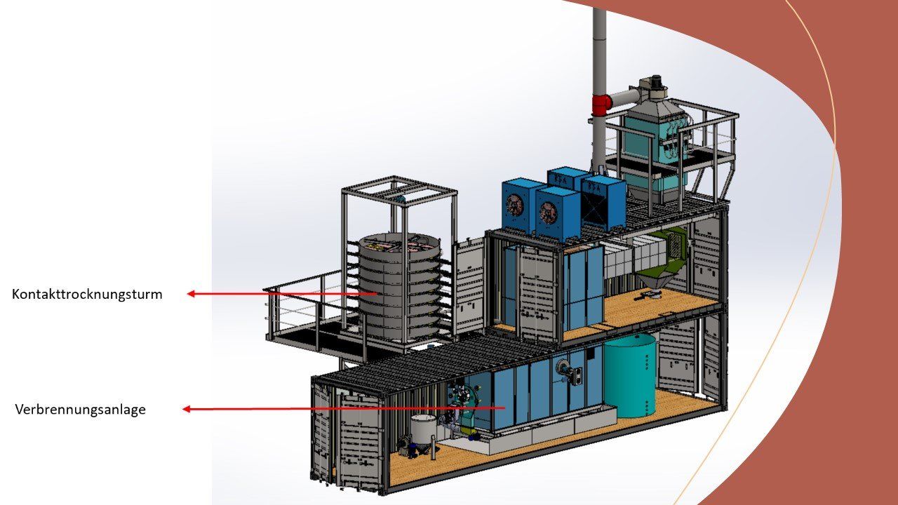 - Die Trocknungsanlage arbeitet so, dass dabei wenig Staub und kaum Geruchsbelästigung auftreten. Hohe Temperatur, geringe Luftumwälzung und eine Luftabsaugung mit Zuführung in den Verbrennungsofen sind dafür die Grundlage.